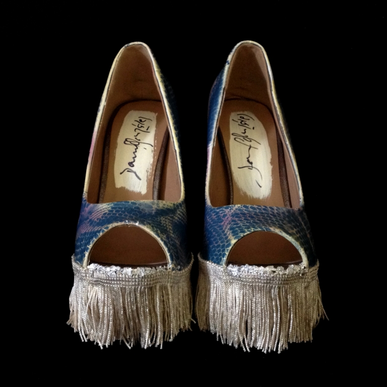 Bastardisation #19, 2014, fringes, silve leaf and spray paint on open toe pumps, size n38 unique piece Published April 3, 2014 at 768 × 768 in #19 Bastardisation Sculpture Shoes Collection Next → Bastardisation #19, 2014, fringes, silve leaf and spray paint on open toe pumps, size n38 unique piece