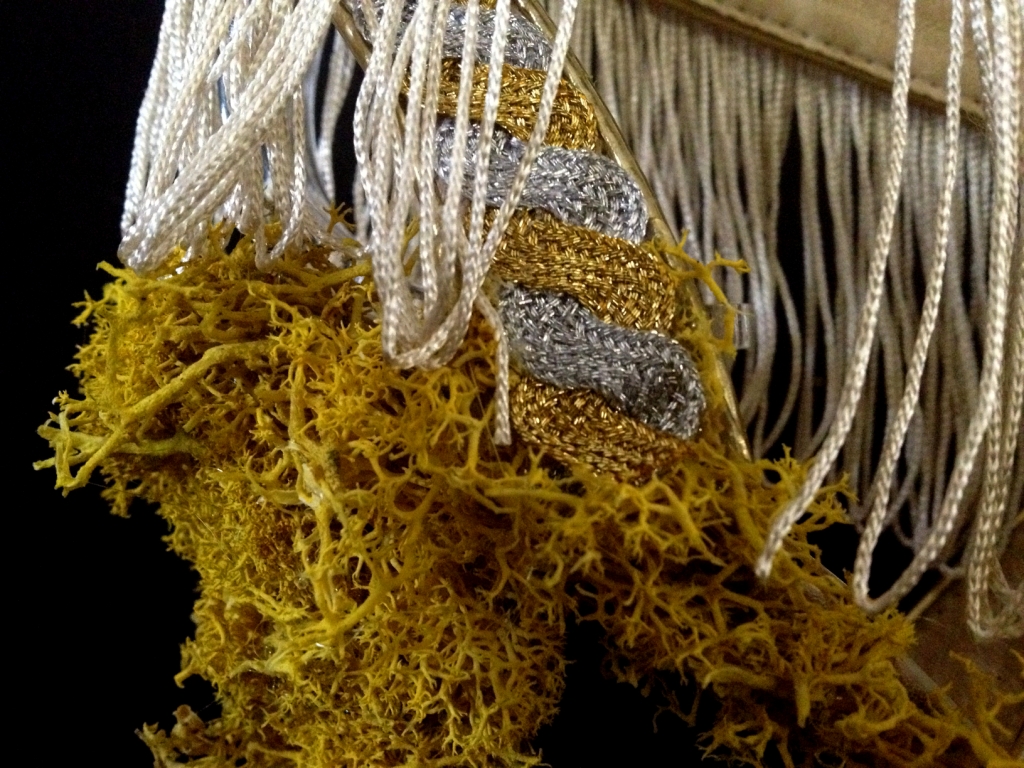 Bastardisation #23, 2014, fringes, golden decoration, Iceland’s moss and spray paint on cross string sandal, size n38, unique piece Published April 3, 2014 at 1024 × 768 in #23 Bastardisation Sculpture Shoes Collection ← Previous Bastardisation #23, 2014, fringes, golden decoration, Iceland’s moss and spray paint on cross string sandal, size n38, unique piece