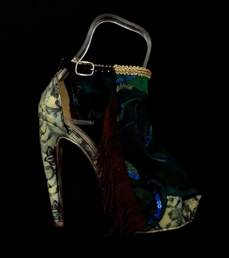 Daniel González_Bastardisation #32_2014 Published April 23, 2014 at 768 × 864 in #32 Bastardisation Sculpture Shoes Collection ← Previous Next → Daniel González_Bastardisation #32_2014_fringes, silk and spray paing on armadillo heels sandals_n38_unique piece _ph Elena Girelli