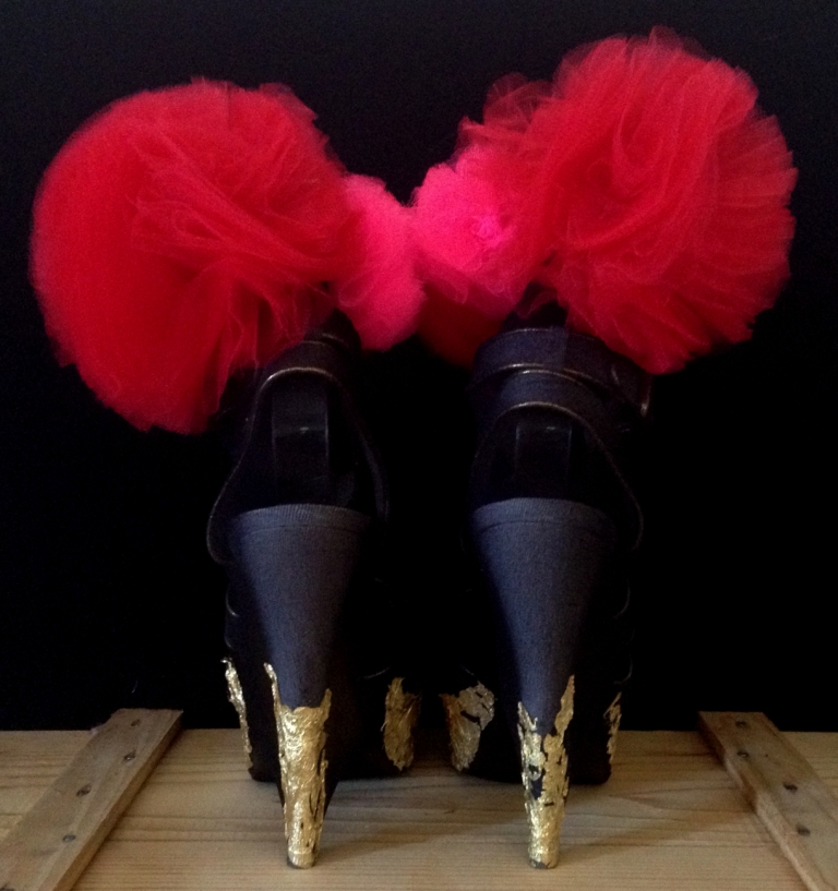 Daniel González_Bastardisation #35_2014 Published April 23, 2014 at 768 × 817 in #35 Bastardisation Sculpture Shoes Collection ← Previous Next → Daniel González_Bastardisation #35_2014_gold leaf on panty hose, pon pon and spray paint on sandal_unique piece _ph Elena Girelli