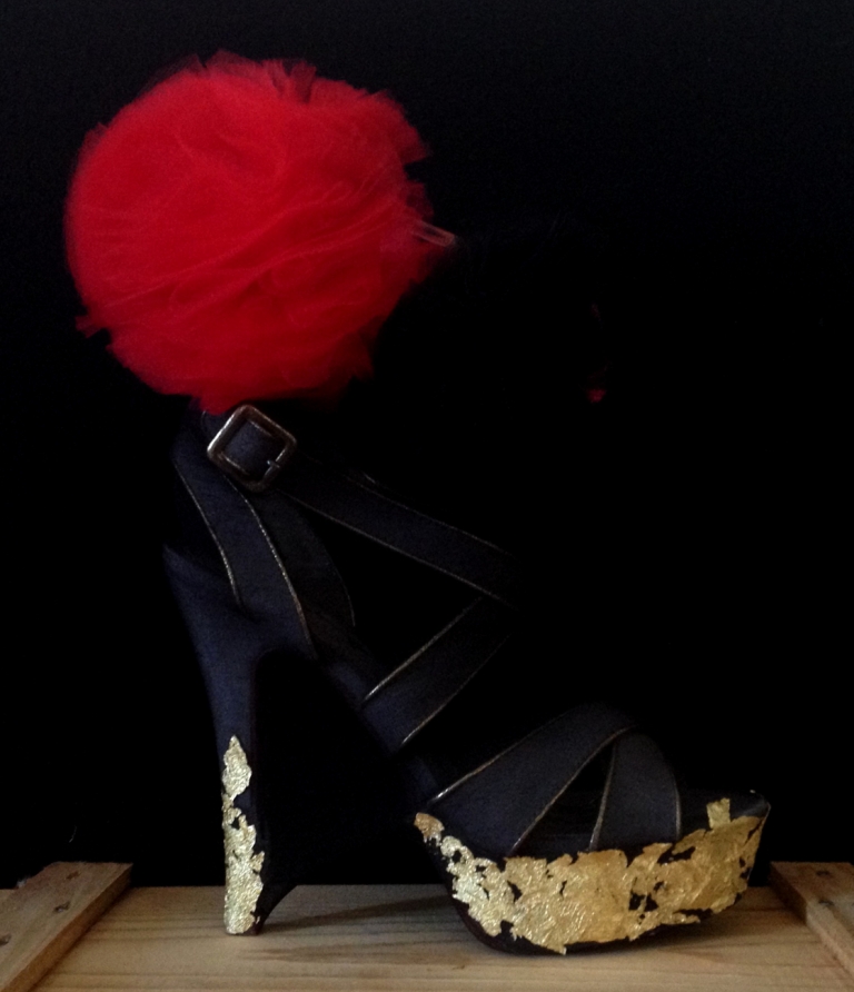 Daniel González_Bastardisation #35_2014 Published April 23, 2014 at 768 × 892 in #35 Bastardisation Sculpture Shoes Collection ← Previous Next → Daniel González_Bastardisation #35_2014_gold leaf on panty hose, pon pon and spray paint on sandal_unique piece _ph Elena Girelli