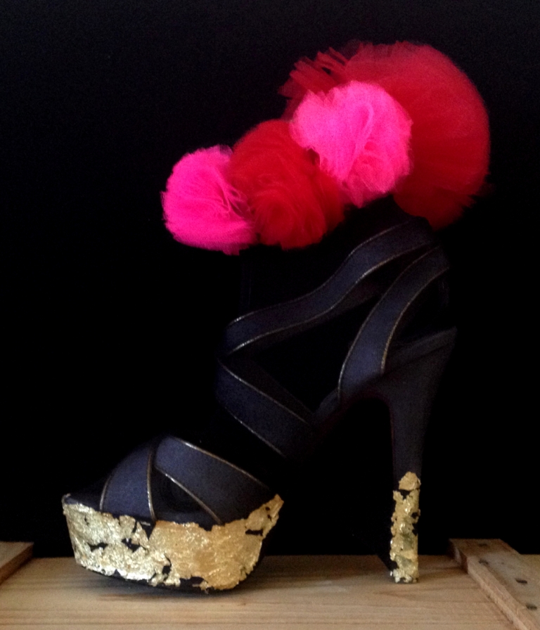 Daniel González_Bastardisation #35_2014 Published April 23, 2014 at 768 × 896 in #35 Bastardisation Sculpture Shoes Collection ← Previous Daniel González_Bastardisation #35_2014_gold leaf on panty hose, pon pon and spray paint on sandal_unique piece _ph Elena Girelli
