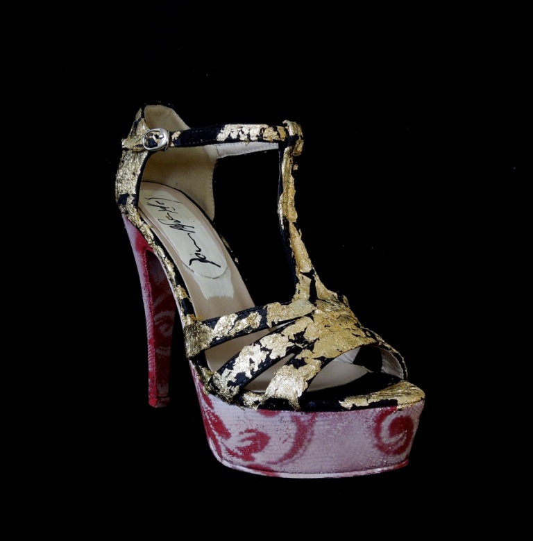 Daniel González_Bastardisation Collection #33_2014 Published July 1, 2014 at 768 × 779 in #33 Bastardisation Sculpture Shoes Collection ← Previous Daniel González_Bastardisation Collection #33_2014_gold leaf, spray paint on sandal pumps_n38 unique piece, Ph Elena Girelli