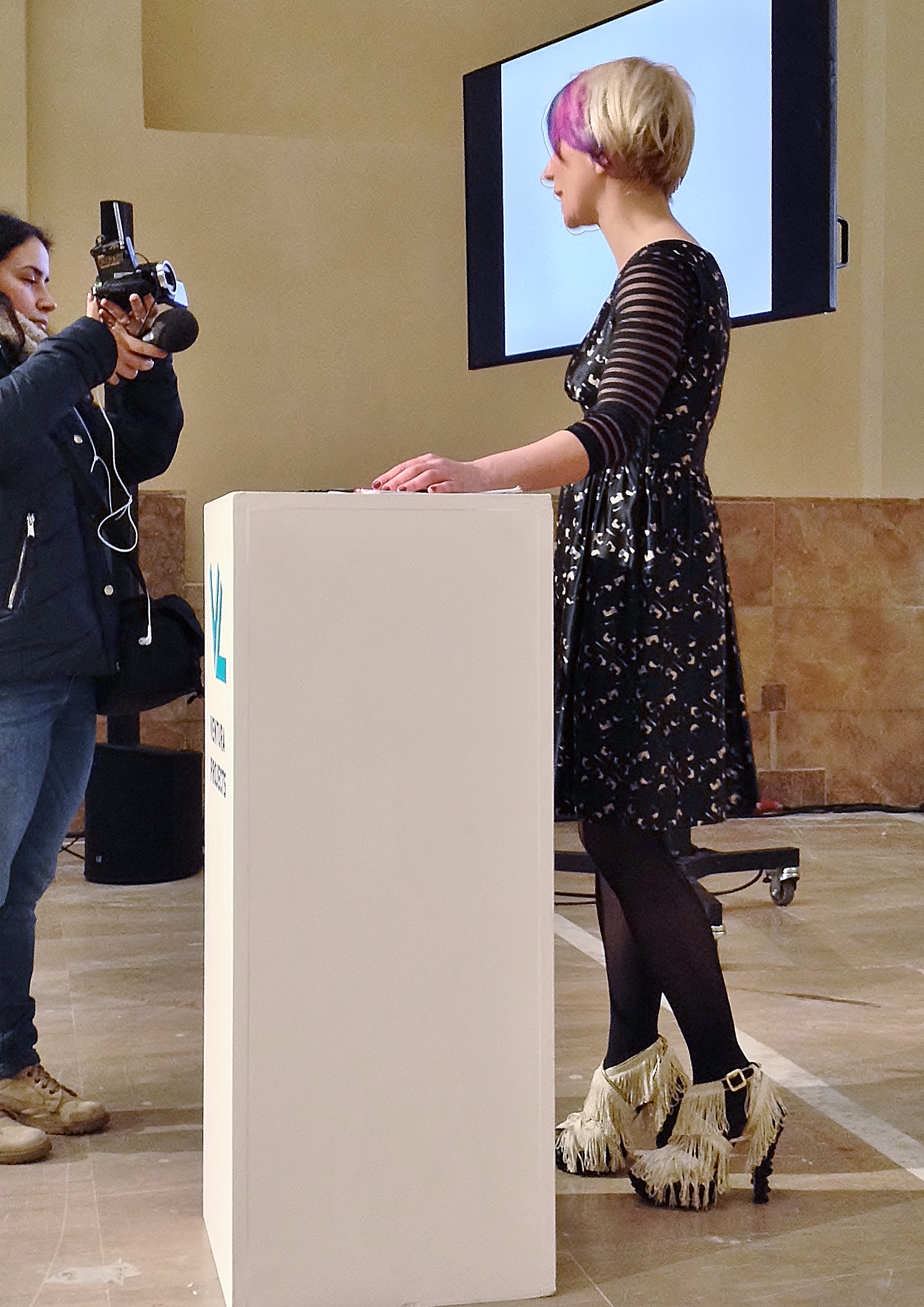 Fulvia Ramogida, Ventura Projects project manager, press conference 2017, photo courtesy Daniel González D.G. Clothes Project Published February 22, 2017 at 1495 × 2114 in Wearing Sculpture Shoes by Daniel González D.G. Clothes Project ← Previous Fulvia Ramogida, Ventura Projects project manager, press conference 2017, photo courtesy Daniel González D.G. Clothes Project