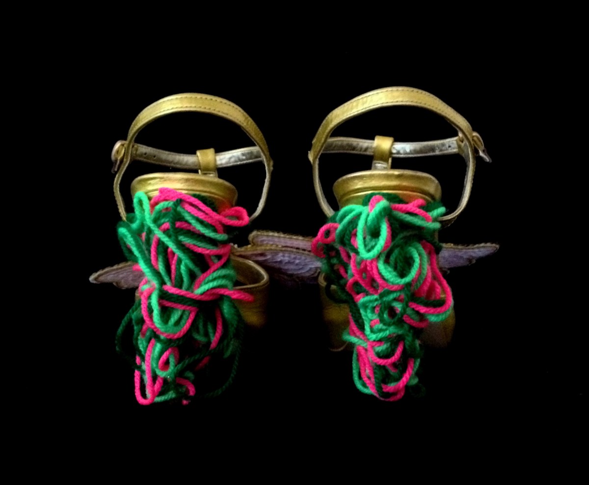 Juliet & the Forbidden Games Shoes #21, 2013, paillettes and wool on leather sandal, unique piece Published October 12, 2013 at 2383 × 1964 Juliet & the Forbidden Games Shoes #21, 2013, paillettes and wool on leather sandal, unique piece